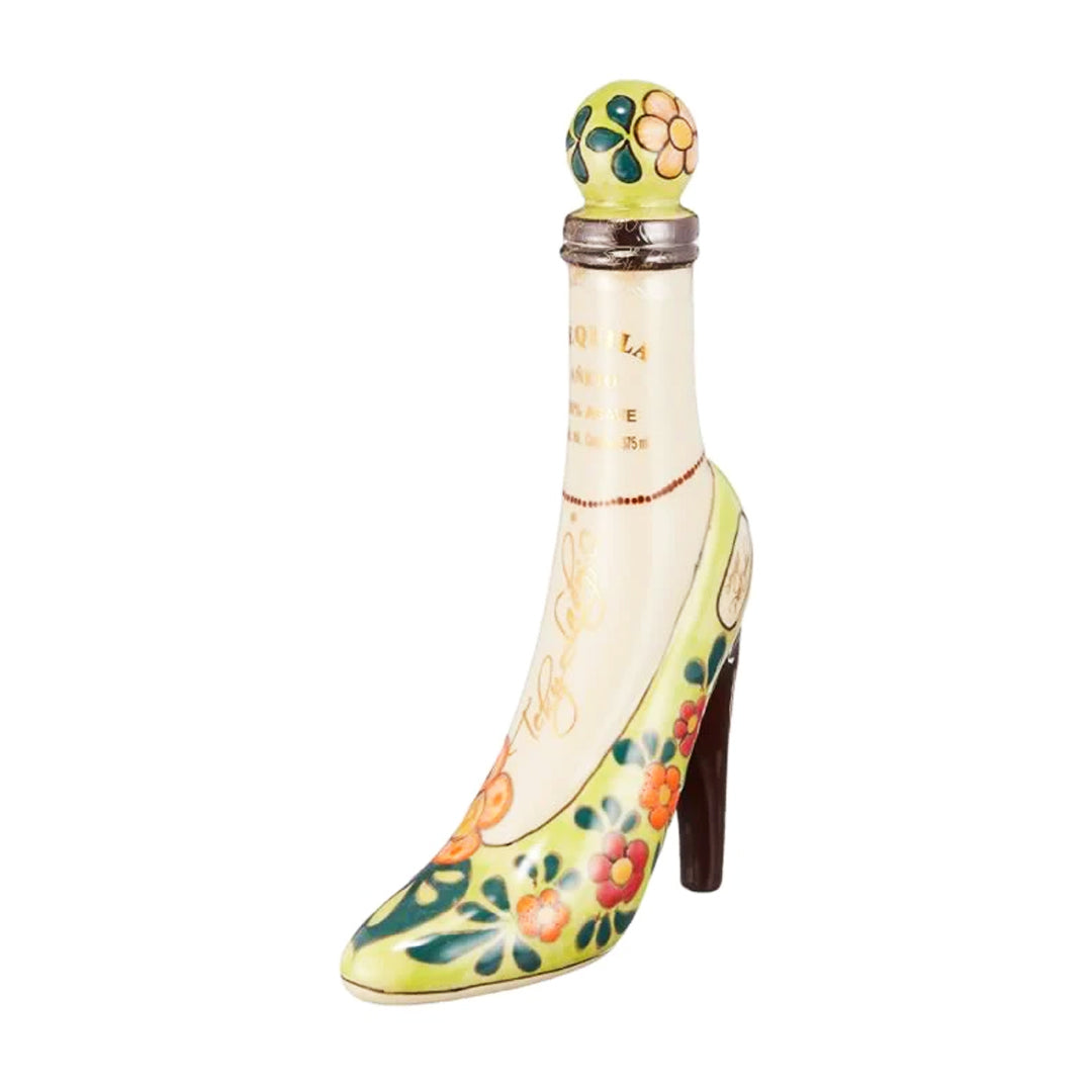 This is a handmade ceramic shoe bottle with a beautiful pattern. This outstanding Añejo 100% agave tequila high heel shoe contains is a bonus, if you do decide to open the bottle.